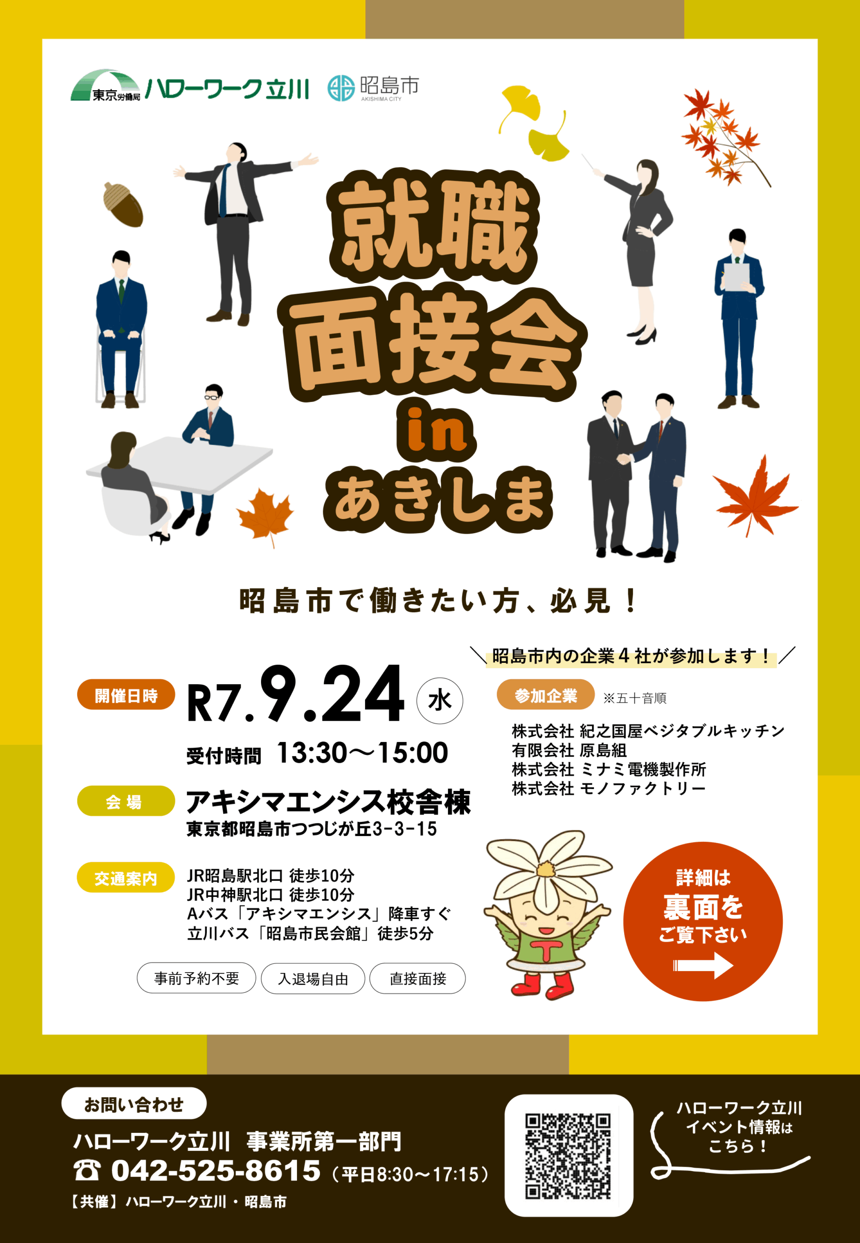 「就職説明会㏌あきしま」参加します。ご来場お待ちしております。